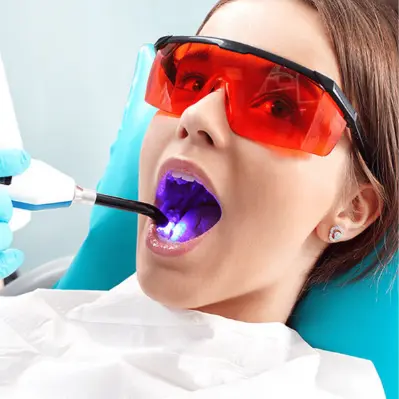 - Tẩy trắng răng: Là phương pháp giúp khắc phục tình trạng răng ố vàng, xỉn màu. Phương pháp này sử dụng thuốc tẩy trắng thấm qua lớp men răng kết hợp với ánh sáng để tạo ra các phản ứng oxi hóa nhằm cắt đứt những chuỗi phân tử màu trong ngà răng.