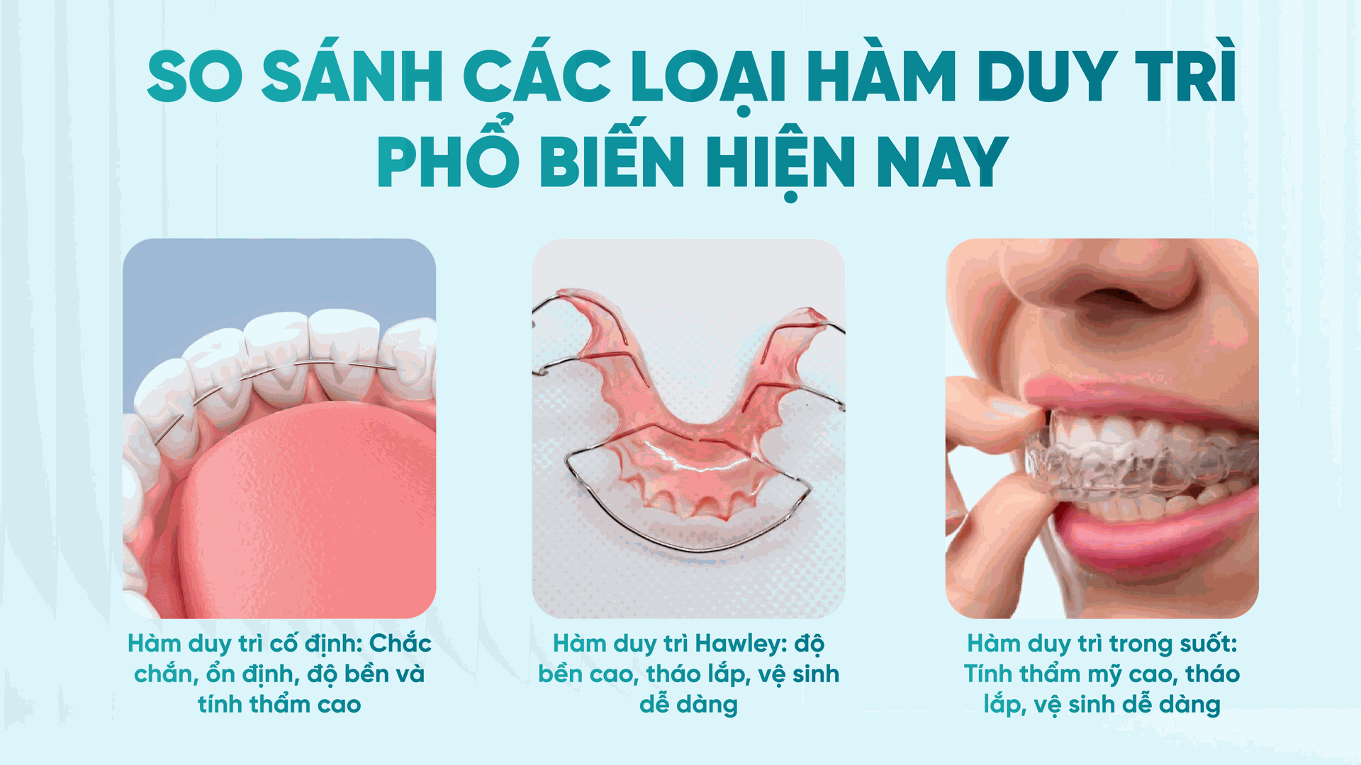 Hàm duy trì là một trong những lựa chọn phổ biến và được tin dùng để giữ cố định răng sau khi kết thúc quá trình niềng răng.