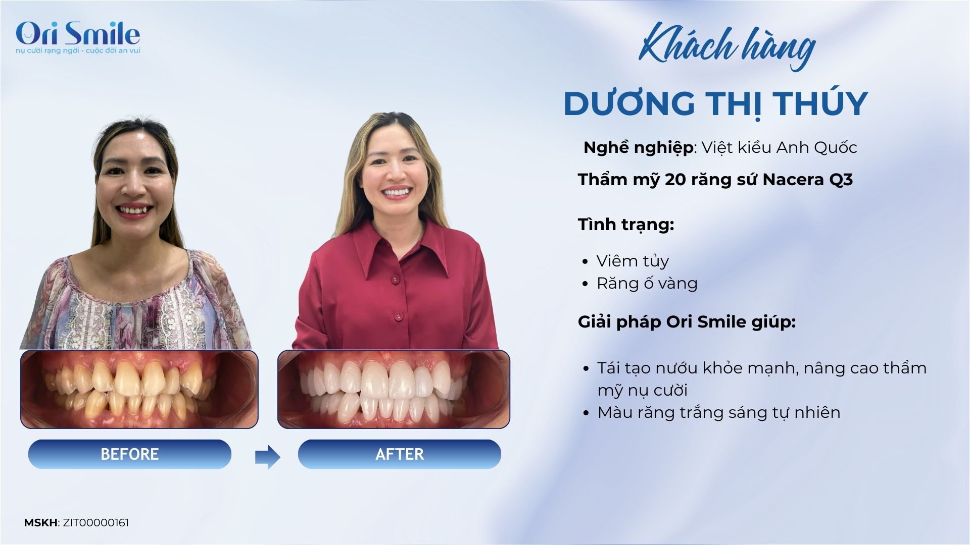 - Độ bền cao: Phương pháp dán sứ ĐỘC QUYỀN tại ORI SMILE có độ bền cao với chế độ bảo hành lên tới 20 NĂM