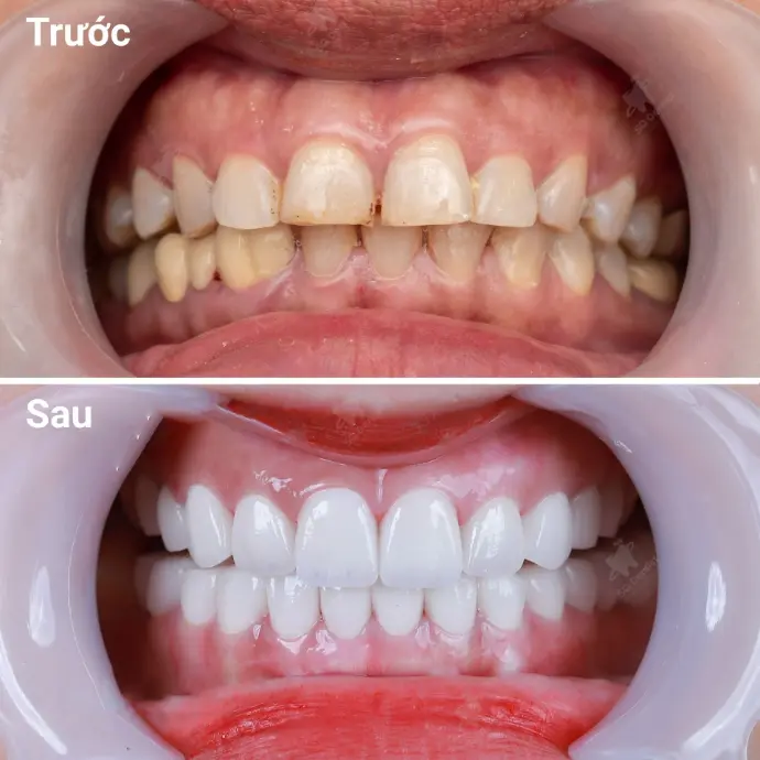 - Màu sắc răng được chọn theo nguyên tắc hòa với màu da và môi, không trắng gắt, không đục, không làm người đối diện “nhìn thấy ngay là răng giả”.
